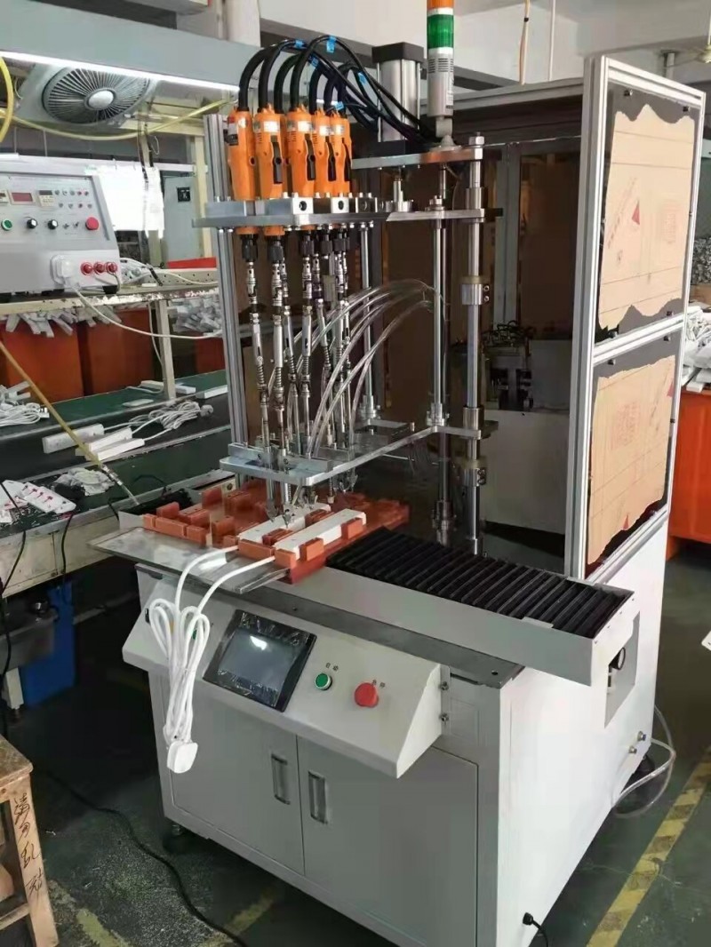 在普通多轴式上面配置一个凸轮分割器和圆型工作台,机器打螺丝,操作人只需要不停取放产品,拧打螺丝和取放产品同步完成,较大幅度提升效率,减轻人工劳动强度。